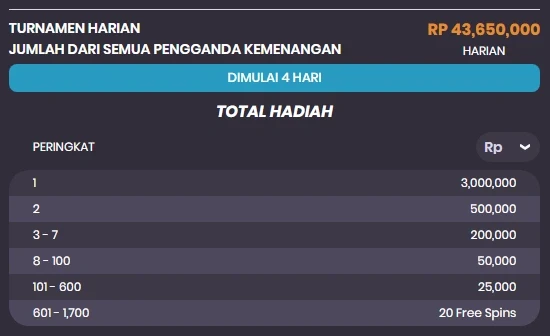 Tabel Hadiah Turnamen Harian