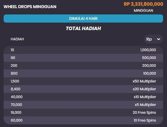 Tabel Hadiah Wheel Drops Mingguan
