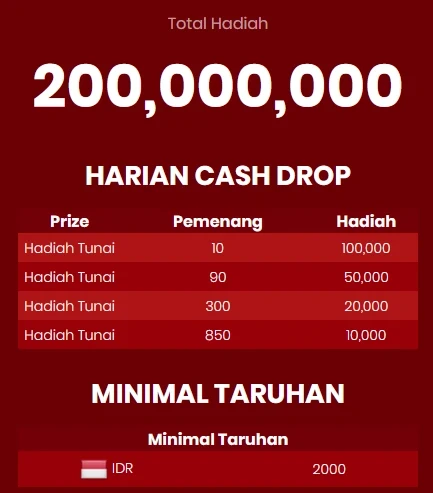 4. Terdapat total 40.300 hadiah tunai dan taruhan ganda senilai Rp 1.004.090.000 yang akan diberikan secara acak kepada pemain yang beruntung.