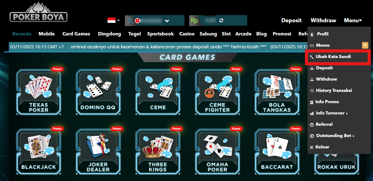 Bagaimana cara tarik dana atau withdraw di Pokerboya.com?