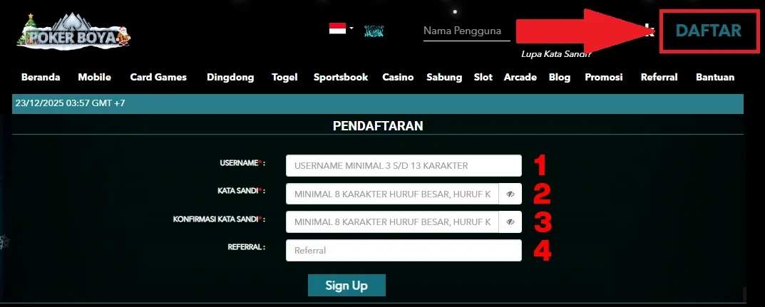 Langkah - langkah untuk membuat akun atau userID di Pokerboya.com :