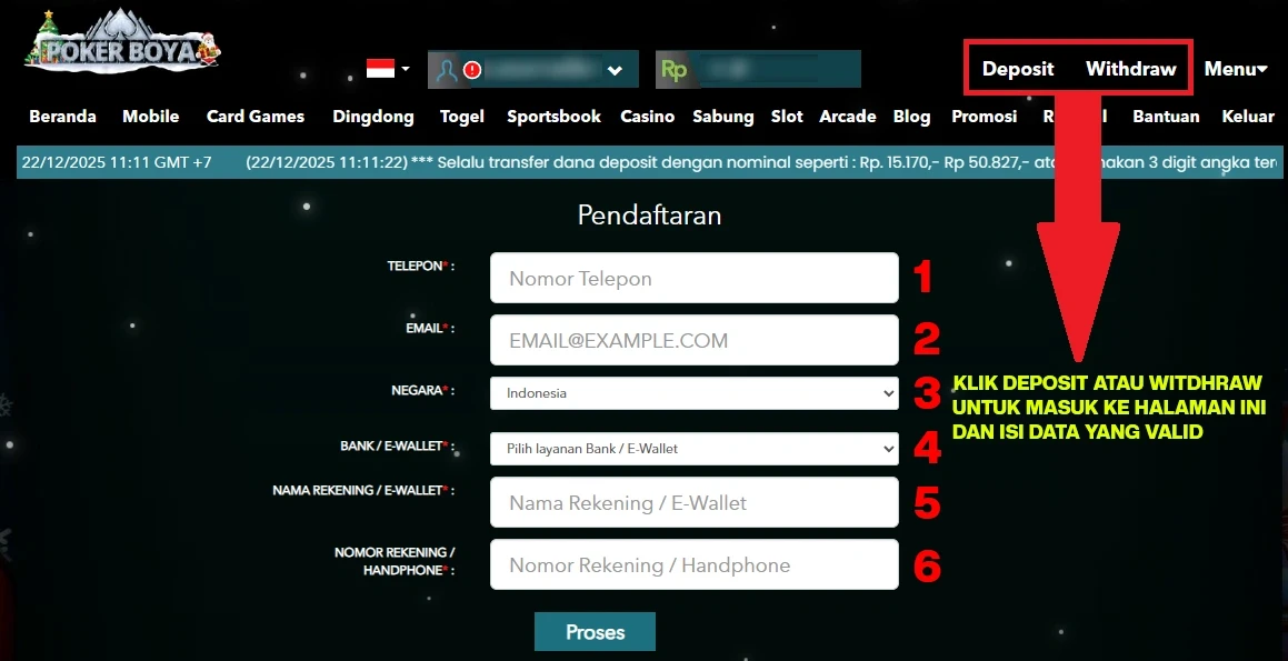 Withdraw adalah Cara tarik dana dari chips anda ke rekening bank yang anda daftarkan pertama kali.